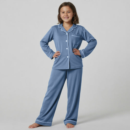 • Kids Jersey Long PJ Set - Ocean Blue Melange