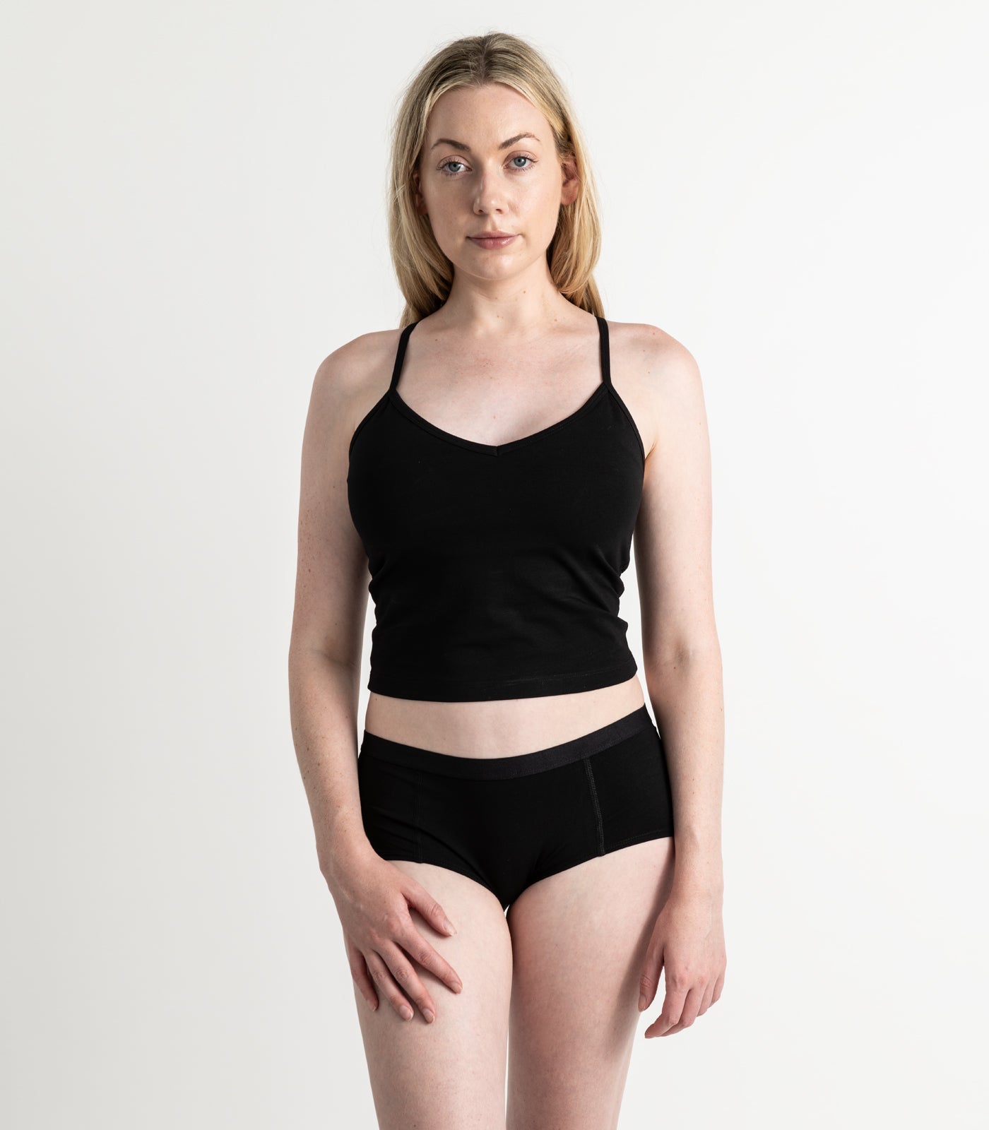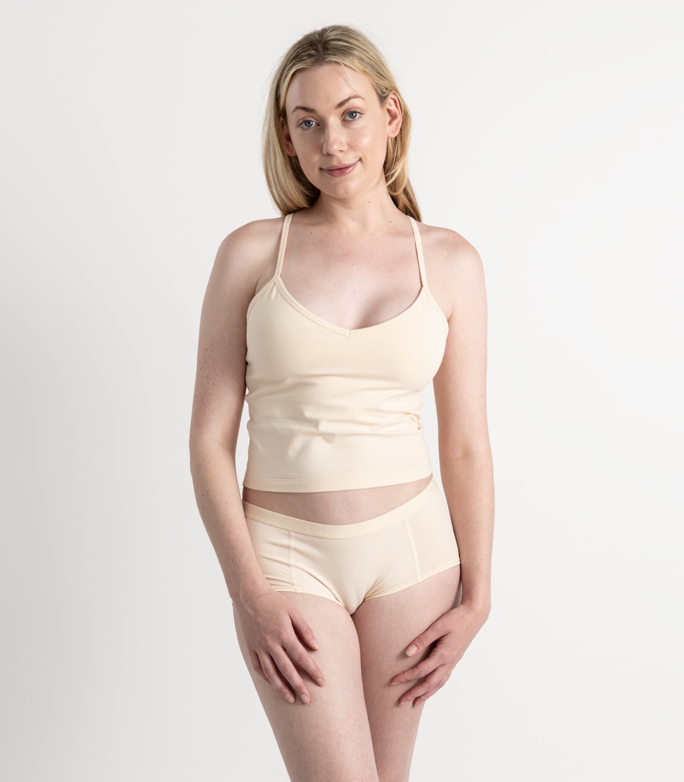 Meet your new go-to for effortless comfort—the Cropped Bra Top. Made from soft, breathable organic cotton, this camisole features a built-in shelf bra for light support and the perfect amount of stretch, making it perfect for lounging, layering, or wearing on its own.